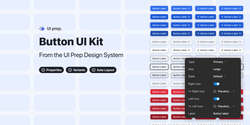 Jumpstart your design process with a full set of button variants inspired by our best-selling UI Prep Design System UI Kit.